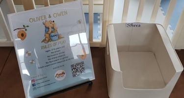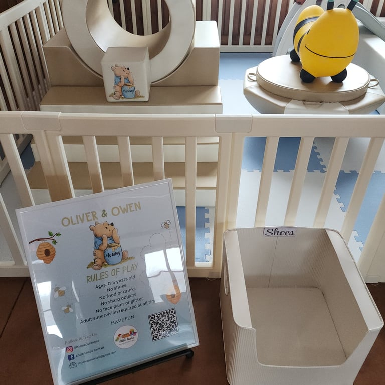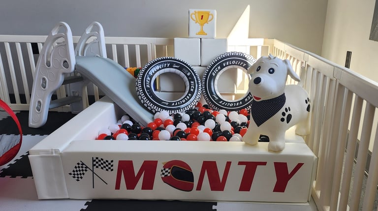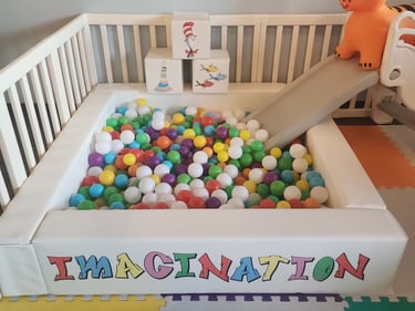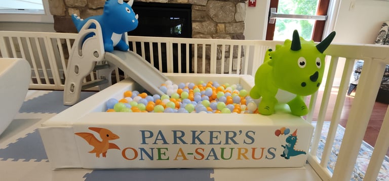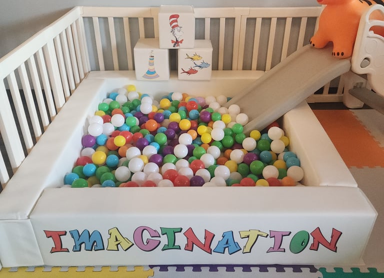 Decals on 6 blocks, ball pit and custom "rules" sign: $50