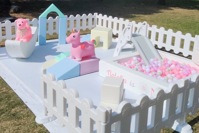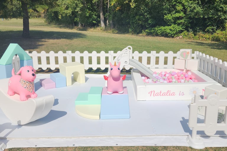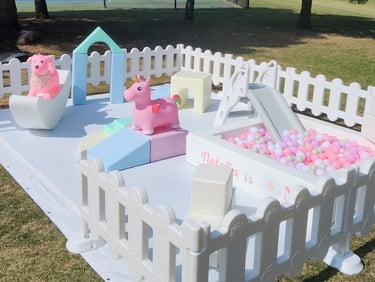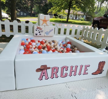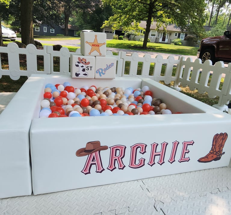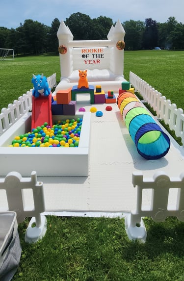 Add personalized decals to ball pits, jumbo blocks, bounce houses and more to match your event's theme!